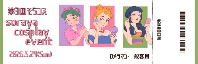 そらコス参加に必要なチケットになります。 こちらはカメラマンさんや付き添いの方専用です。 コスプレイヤーさんは別のチケットをご購入下さいませ 〜チケットに関する注意事項〜 チケットは当日こみ有効です。 1枚に付き1名様入場可能です。 中止やいかなる理由があっても返金は致しかねます お客様情報は該当イベントでのみ使用します。 第三者に対して同意なしに個人情報を提供することはありません。