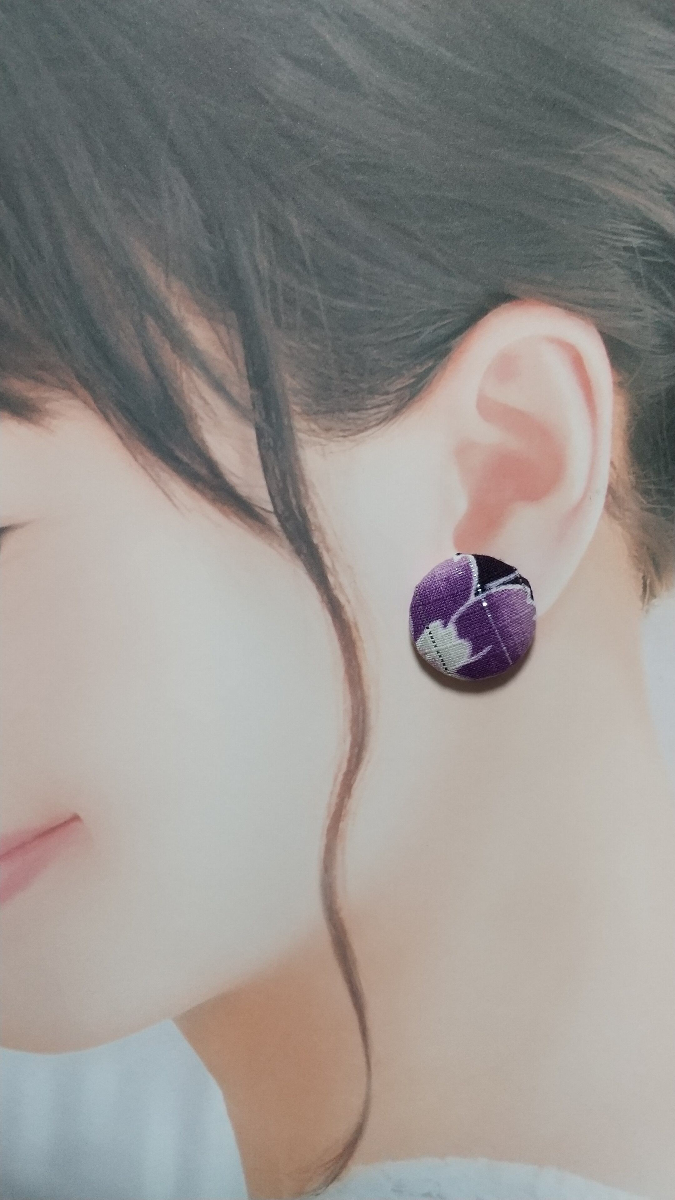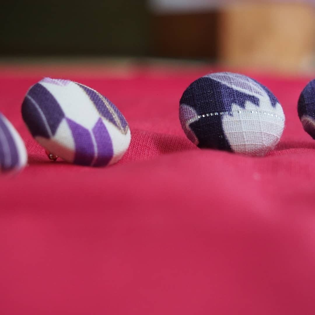 It`s button earrings. left side product is Yagasuri style,right side product is made out of Yukata.