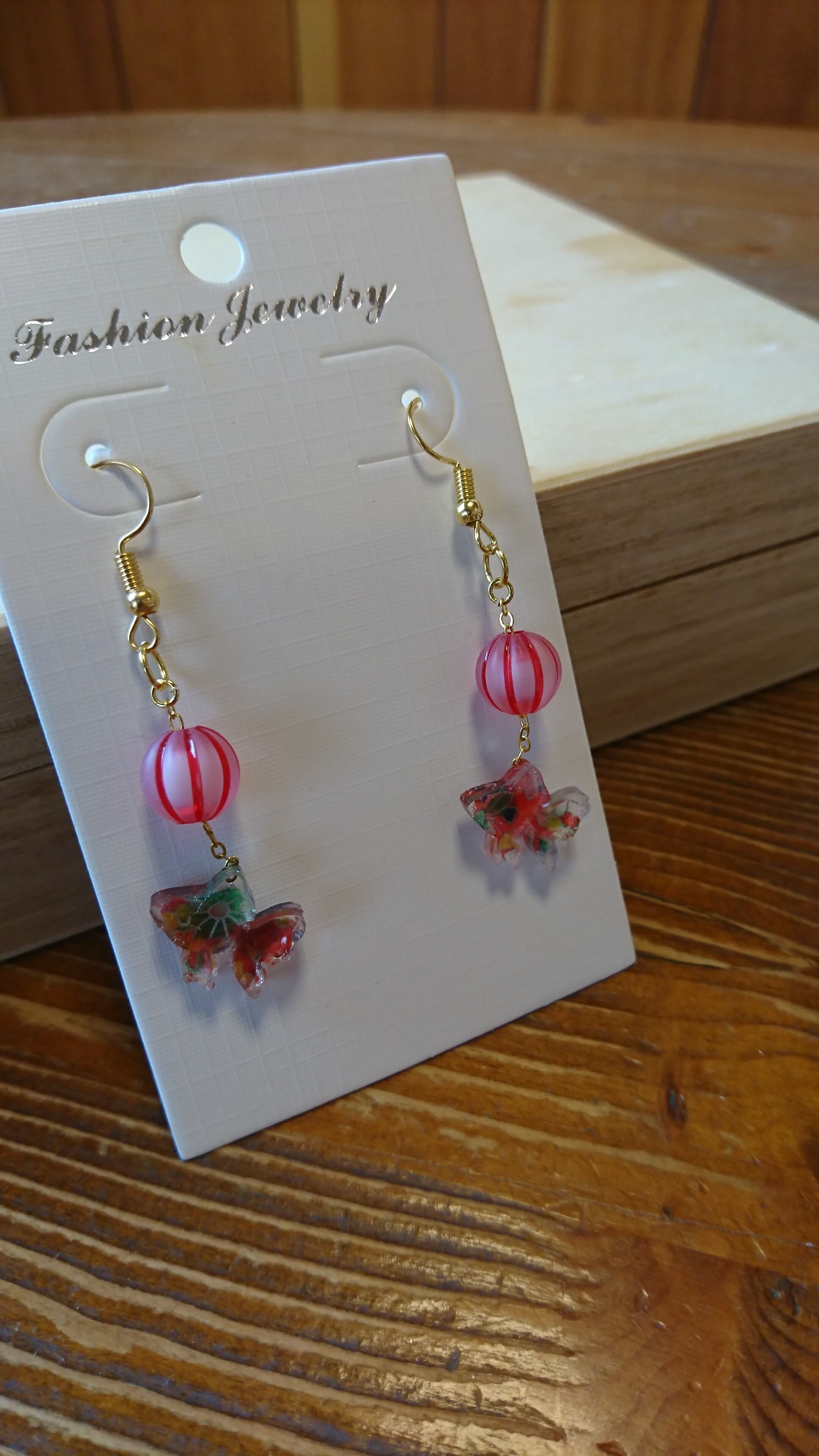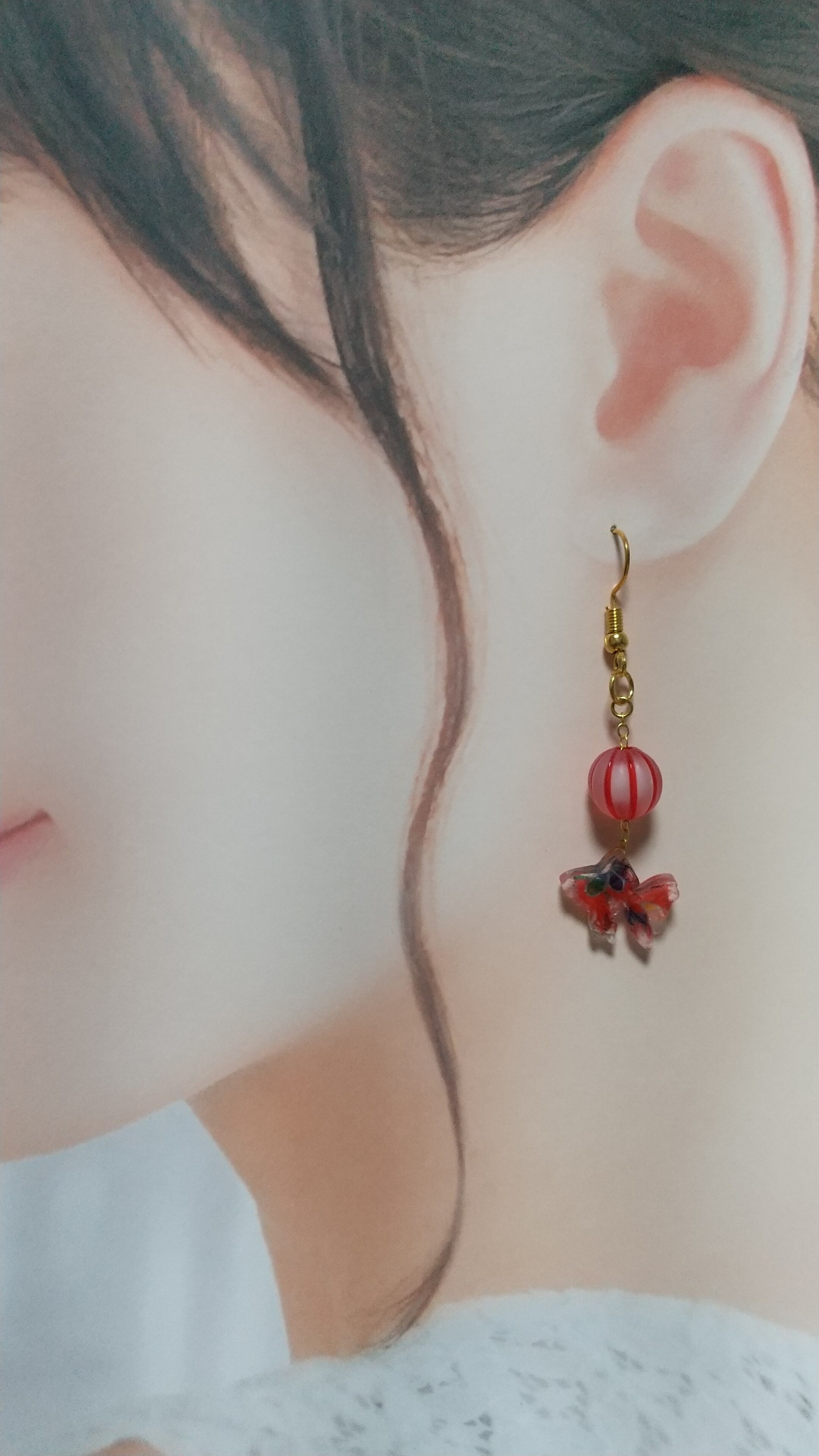 赤のビーズと金魚が祭りっぽくて可愛らしい一品となってます。
